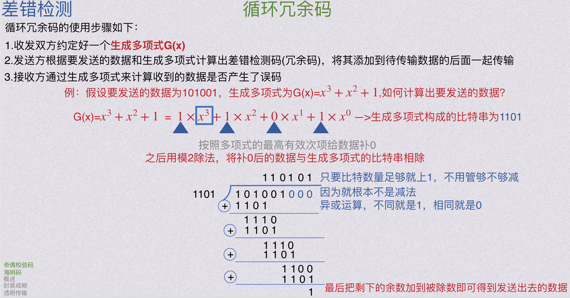 差分曼彻斯特编码:每个码元中间都发⽣电平跳变,电平跳变仅表示时钟信号,不表示数据。数据的表示在于每个码元 开始处是否有电平跳变,⽆跳变表示1,有跳变表示0